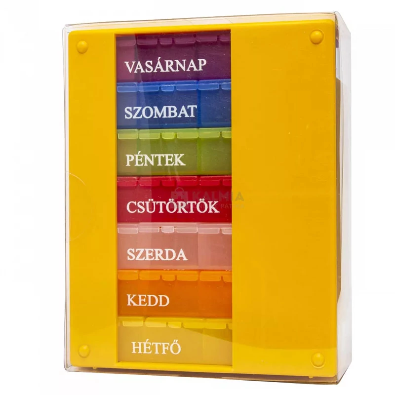 - A hét minden napjára külön, eltérő színű dobozt tartalmaz.